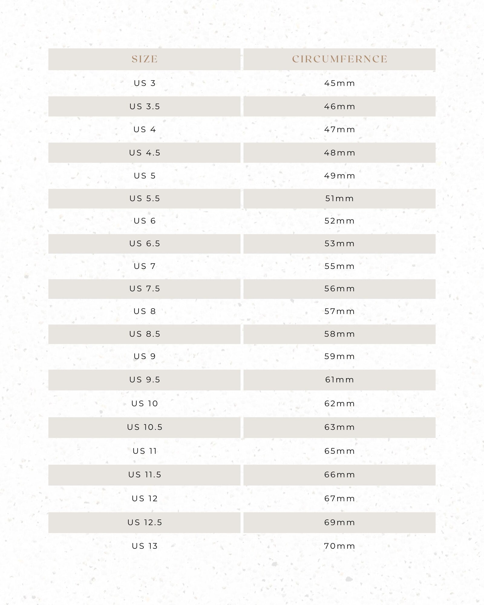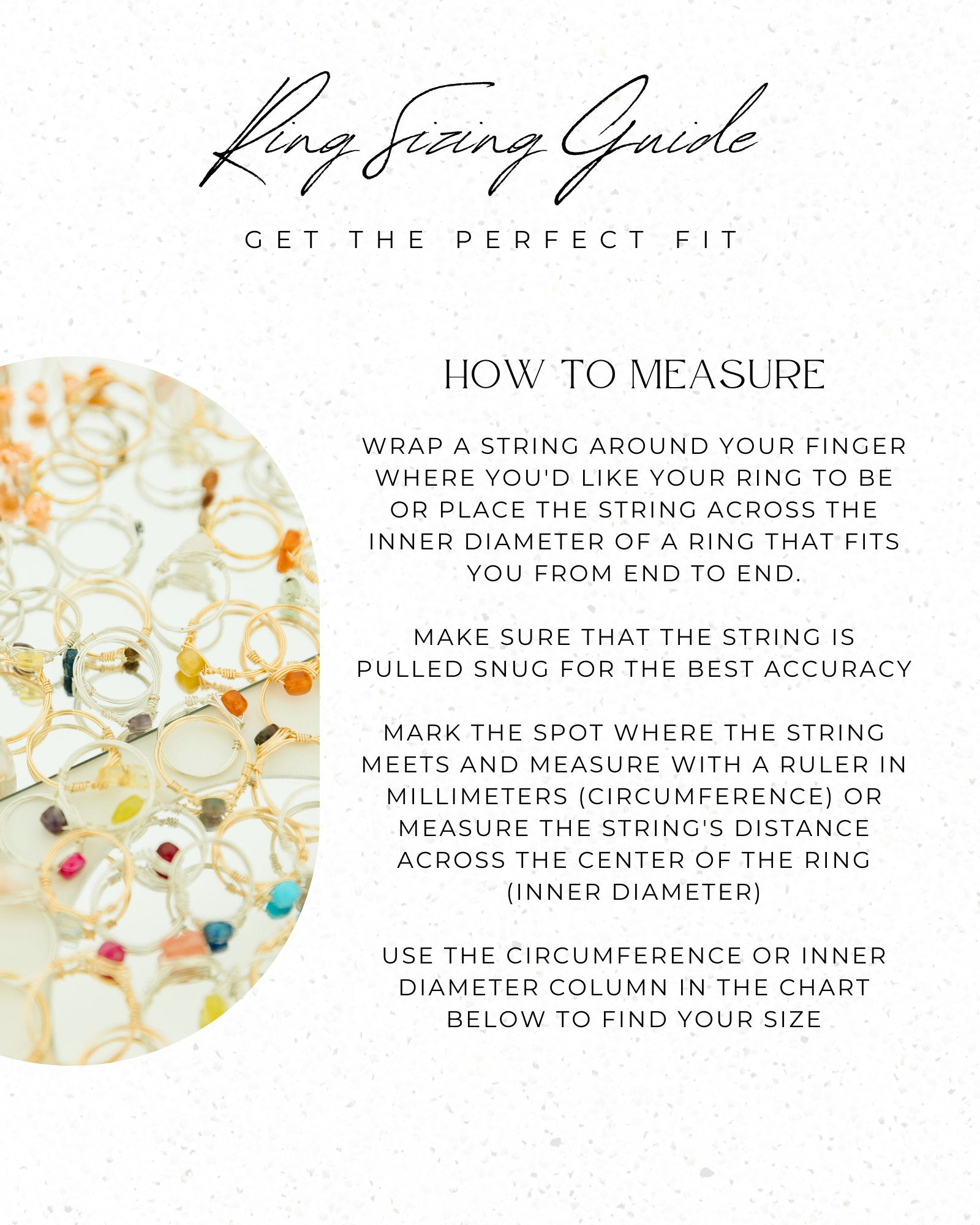 Rings are created true to standard US sizing. For the best fit we suggest having your finger(s) sized. Alternatively, you may follow the steps below to find your best fit: